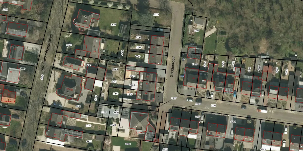 Goudenrood 43 is gelegen op kadastraal perceel HHM00A3247. Deze kadastrale aanduiding is uniek en wordt gebruikt door het Kadaster om eigendomsrechten en andere zakelijke rechten vast te leggen. Het perceel maakt onderdeel uit van de kadastrale gemeente Houthem.