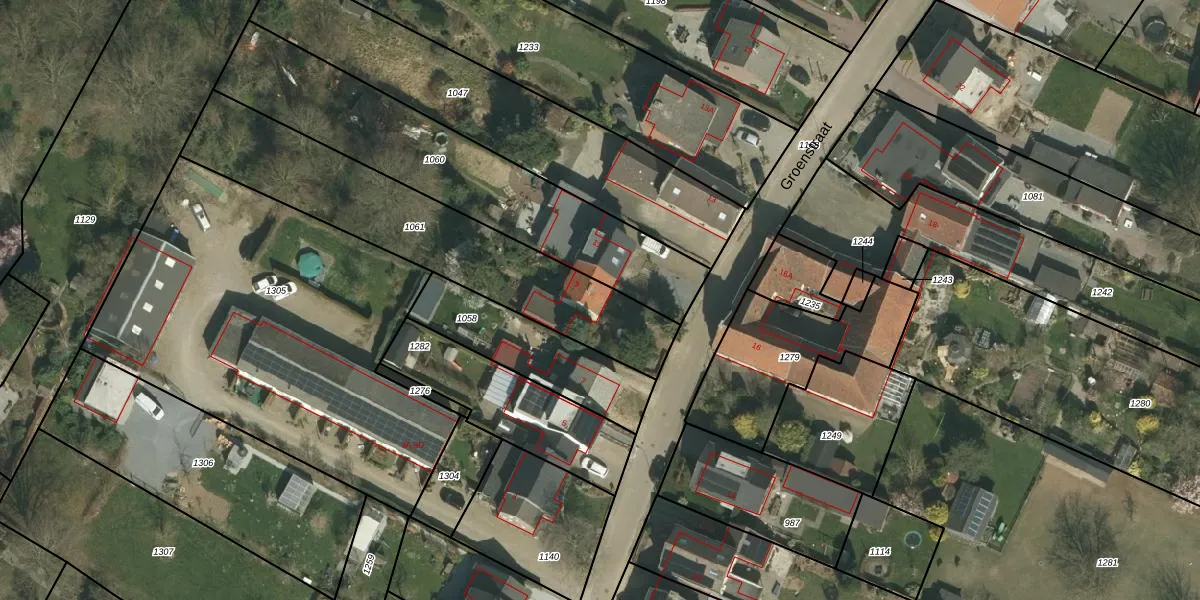 Het perceel waarop Groenstraat 9 staat heeft een oppervlakte van 1055 m². Dit is een zeer groot perceel. De perceeloppervlakte wordt geregistreerd door het Kadaster. Gedetailleerde informatie over de maten van dit perceel kunt u vinden in het rapport Kadastrale kaart met maatvoering van Groenstraat 9.