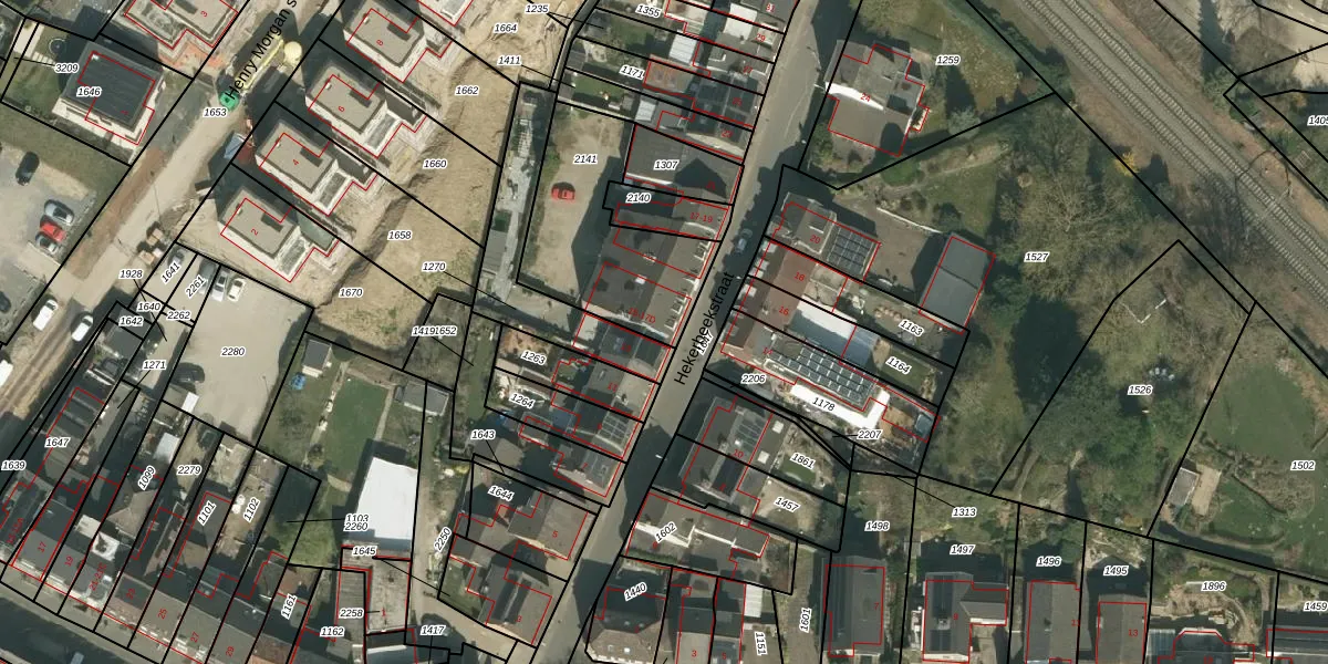 Hekerbeekstraat 15 is gelegen op kadastraal perceel SCH02B2141. Deze kadastrale aanduiding is uniek en wordt gebruikt door het Kadaster om eigendomsrechten en andere zakelijke rechten vast te leggen. Het perceel maakt onderdeel uit van de kadastrale gemeente Schin op Geul.
