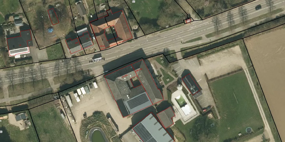 Het perceel waarop Hekerweg 20-C staat heeft een oppervlakte van 7,3 ha. Dit is een zeer groot perceel. De perceeloppervlakte wordt geregistreerd door het Kadaster. Gedetailleerde informatie over de maten van dit perceel kunt u vinden in het rapport Kadastrale kaart met maatvoering van Hekerweg 20-C.