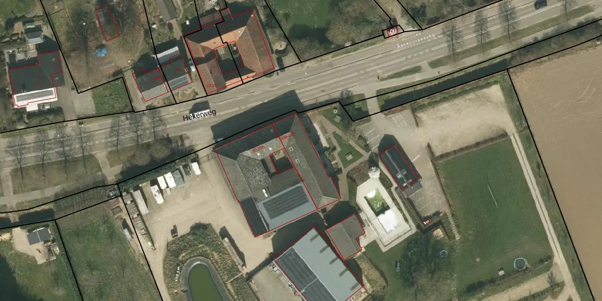Het perceel waarop Hekerweg 20-D staat heeft een oppervlakte van 7,3 ha. Dit is een zeer groot perceel. De perceeloppervlakte wordt geregistreerd door het Kadaster. Gedetailleerde informatie over de maten van dit perceel kunt u vinden in het rapport Kadastrale kaart met maatvoering van Hekerweg 20-D.