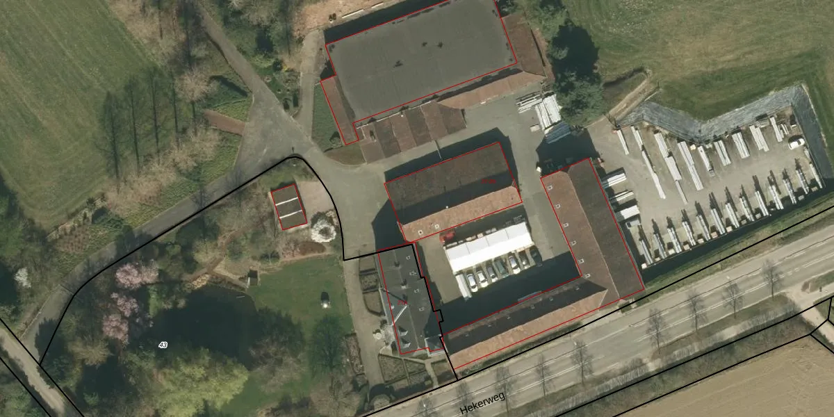 Het perceel waarop Hekerweg 29 staat heeft een oppervlakte van 8,7 ha. Dit is een zeer groot perceel. De perceeloppervlakte wordt geregistreerd door het Kadaster. Gedetailleerde informatie over de maten van dit perceel kunt u vinden in het rapport Kadastrale kaart met maatvoering van Hekerweg 29.