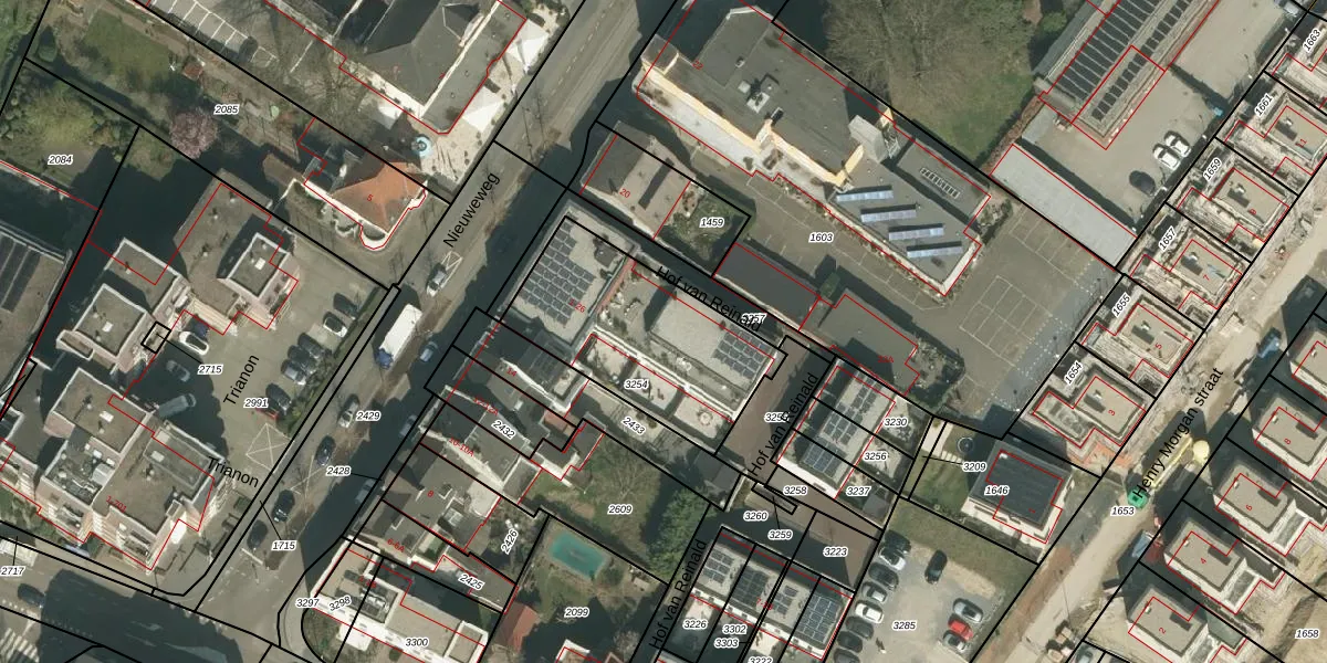 Het perceel waarop Hof van Reinald 18 staat heeft een oppervlakte van 727 m². Dit is een groot perceel. De perceeloppervlakte wordt geregistreerd door het Kadaster. Gedetailleerde informatie over de maten van dit perceel kunt u vinden in het rapport Kadastrale kaart met maatvoering van Hof van Reinald 18.