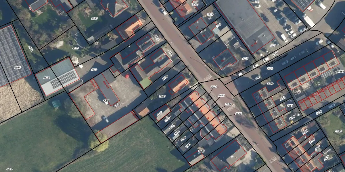 Gebruik de zoekbalk of klik op een perceel voor informatie over de adressen binnen dit perceel.