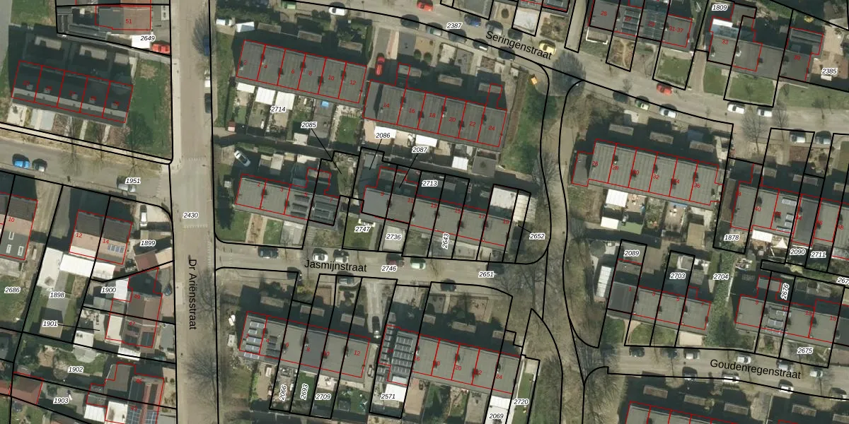 Gebruik de zoekbalk of klik op een perceel voor informatie over de adressen binnen dit perceel.