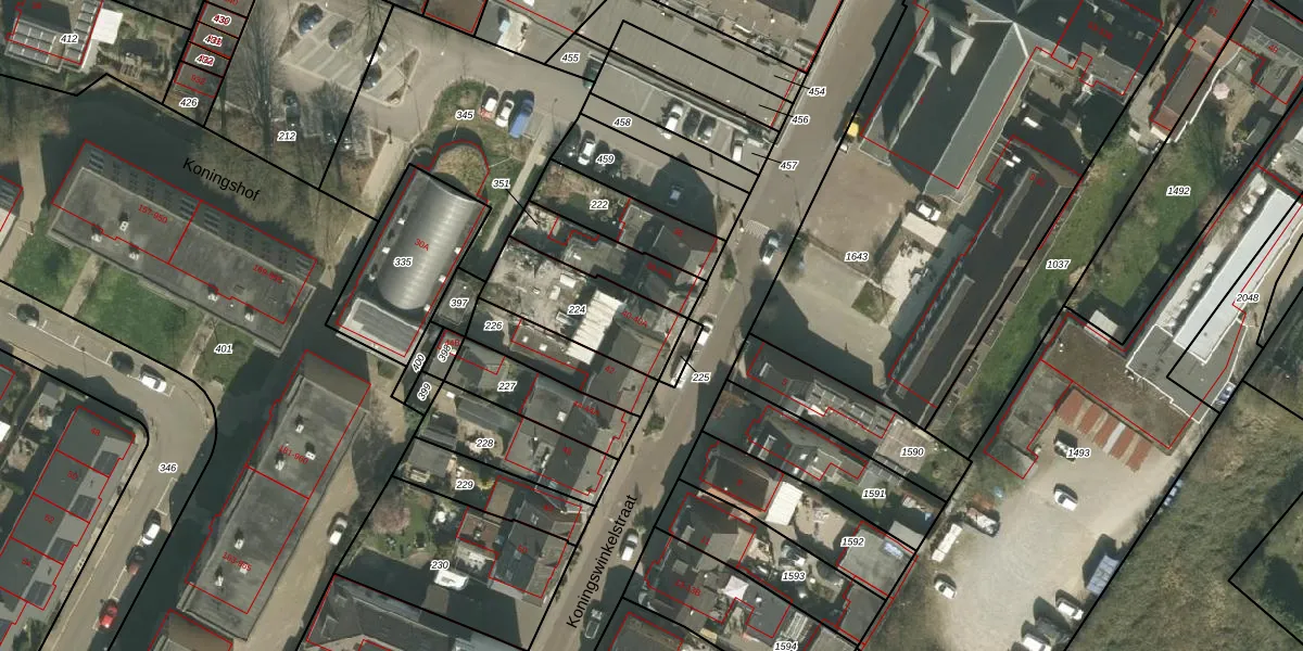 Het perceel waarop Koningswinkelstraat 40 staat heeft een oppervlakte van 310 m². Dit is een groot perceel. De perceeloppervlakte wordt geregistreerd door het Kadaster. Gedetailleerde informatie over de maten van dit perceel kunt u vinden in het rapport Kadastrale kaart met maatvoering van Koningswinkelstraat 40.