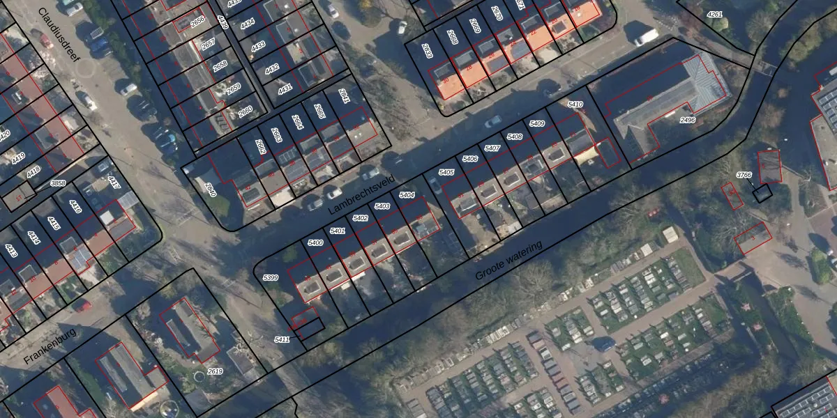 Lambrechtsveld 33 is gelegen op kadastraal perceel VKB02A5404. Deze kadastrale aanduiding is uniek en wordt gebruikt door het Kadaster om eigendomsrechten en andere zakelijke rechten vast te leggen. Het perceel maakt onderdeel uit van de kadastrale gemeente Valkenburg Zuid-Holland.