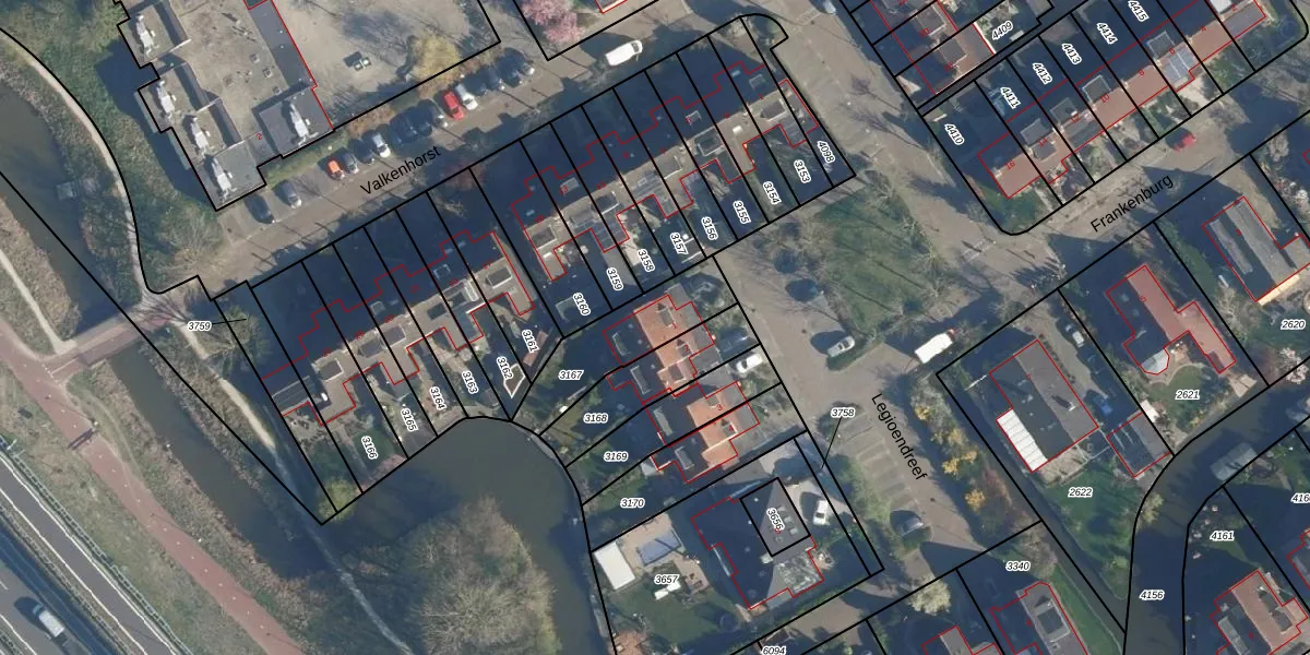 Legioendreef 1 is gelegen op kadastraal perceel VKB02A3167. Deze kadastrale aanduiding is uniek en wordt gebruikt door het Kadaster om eigendomsrechten en andere zakelijke rechten vast te leggen. Het perceel maakt onderdeel uit van de kadastrale gemeente Valkenburg Zuid-Holland.