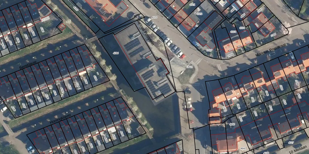 Marinus Postplein 20 is gelegen op kadastraal perceel VKB02A4284. Deze kadastrale aanduiding is uniek en wordt gebruikt door het Kadaster om eigendomsrechten en andere zakelijke rechten vast te leggen. Het perceel maakt onderdeel uit van de kadastrale gemeente Valkenburg Zuid-Holland.