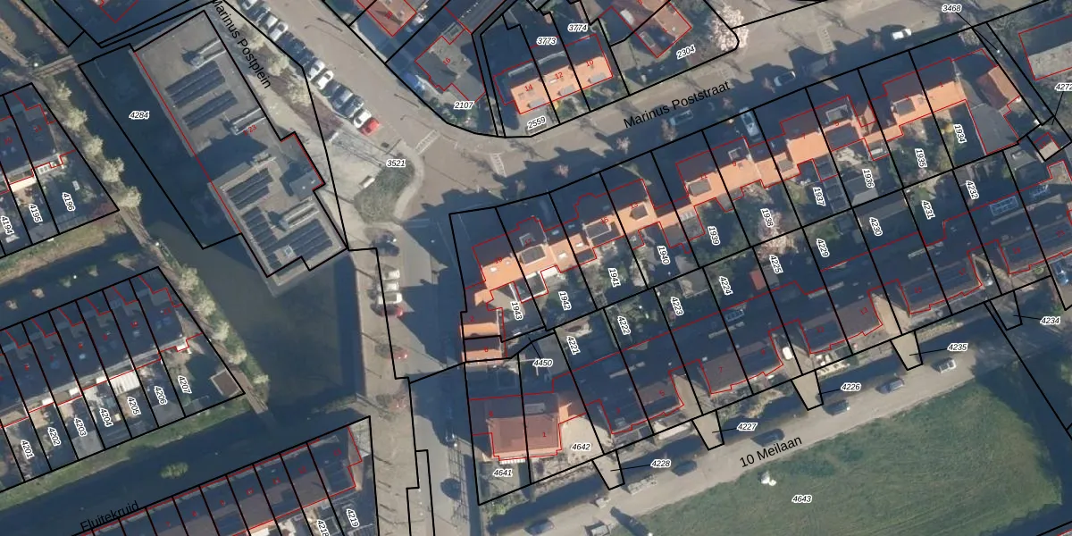 Het perceel waarop Marinus Poststraat 17 staat heeft een oppervlakte van 255 m². Dit is een middelgroot perceel. De perceeloppervlakte wordt geregistreerd door het Kadaster. Gedetailleerde informatie over de maten van dit perceel kunt u vinden in het rapport Kadastrale kaart met maatvoering van Marinus Poststraat 17.
