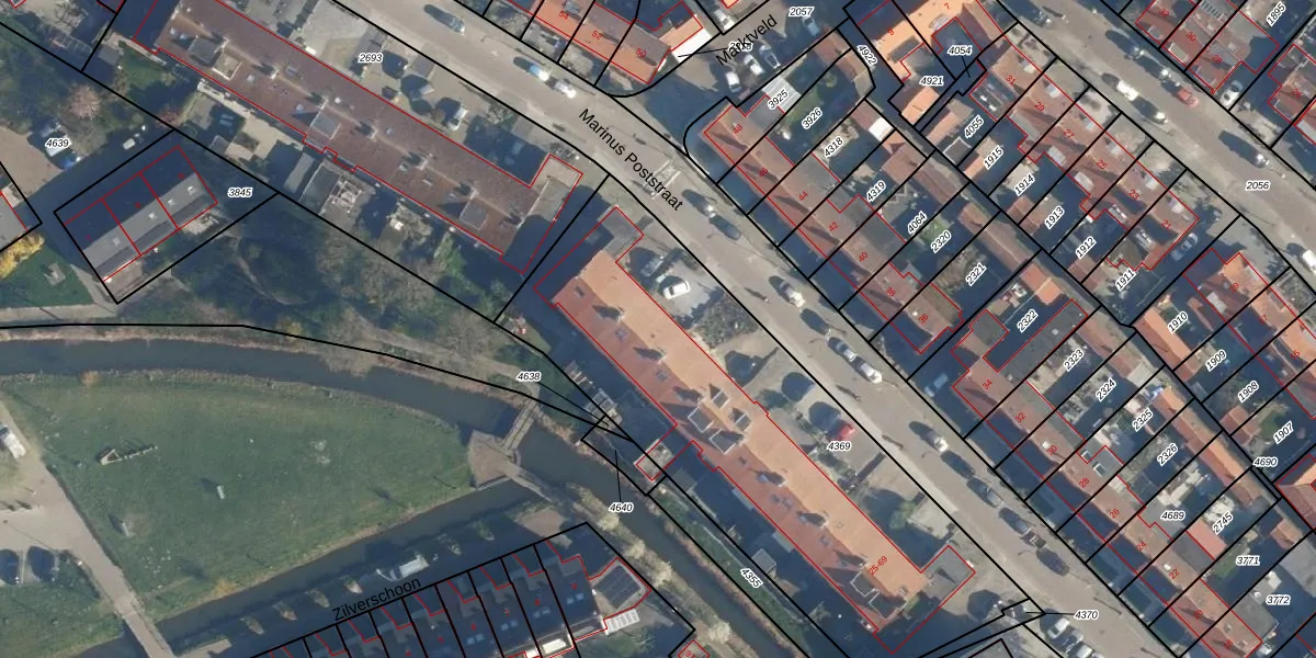 Marinus Poststraat 35 is gelegen op kadastraal perceel VKB02A4369. Deze kadastrale aanduiding is uniek en wordt gebruikt door het Kadaster om eigendomsrechten en andere zakelijke rechten vast te leggen. Het perceel maakt onderdeel uit van de kadastrale gemeente Valkenburg Zuid-Holland.