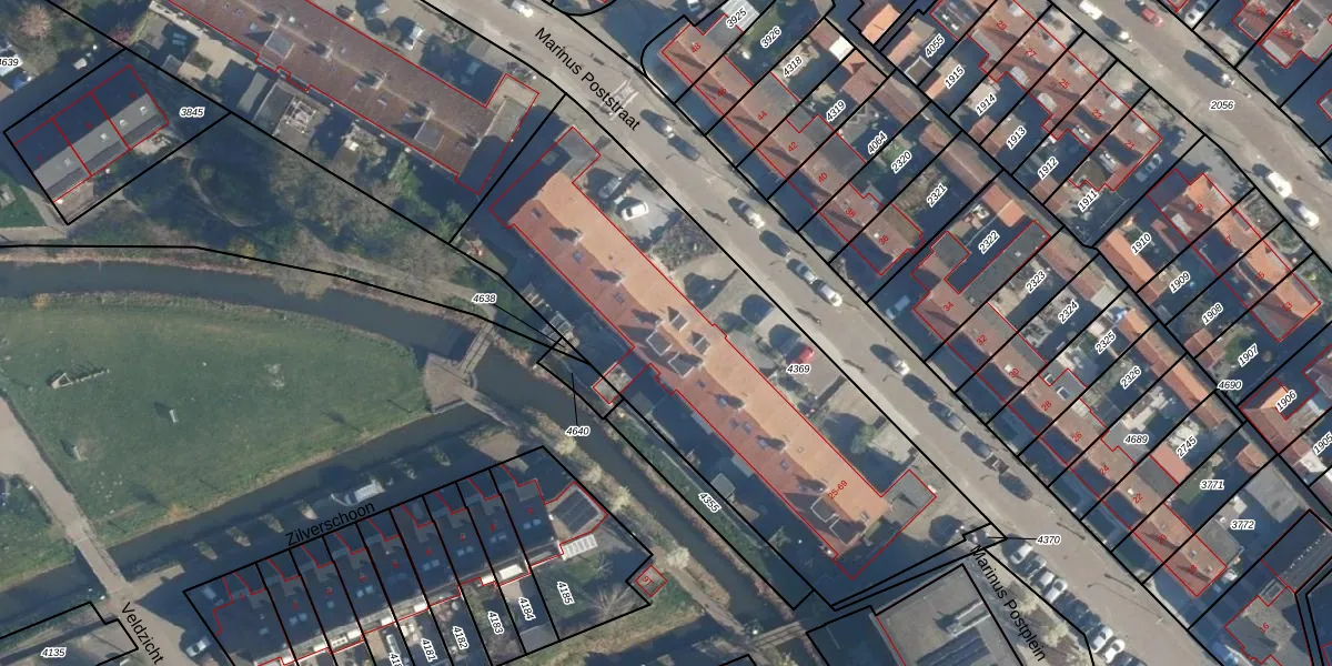 Marinus Poststraat 57 is gelegen op kadastraal perceel VKB02A4369. Deze kadastrale aanduiding is uniek en wordt gebruikt door het Kadaster om eigendomsrechten en andere zakelijke rechten vast te leggen. Het perceel maakt onderdeel uit van de kadastrale gemeente Valkenburg Zuid-Holland.