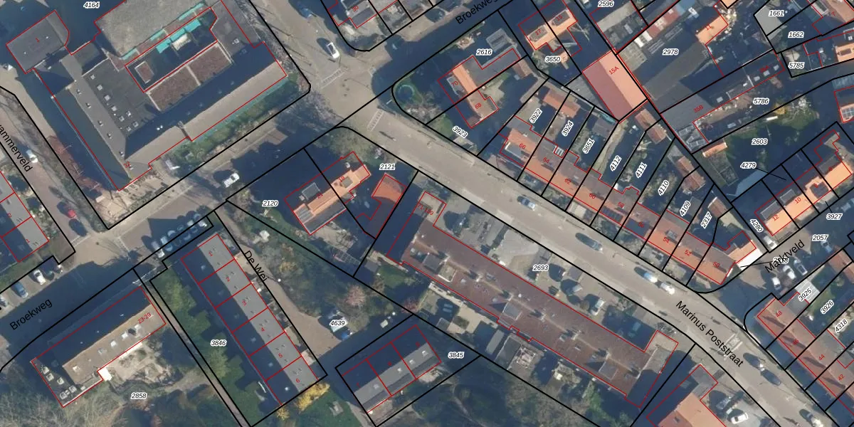 Marinus Poststraat 81-A is gelegen op kadastraal perceel VKB02A2693. Deze kadastrale aanduiding is uniek en wordt gebruikt door het Kadaster om eigendomsrechten en andere zakelijke rechten vast te leggen. Het perceel maakt onderdeel uit van de kadastrale gemeente Valkenburg Zuid-Holland.