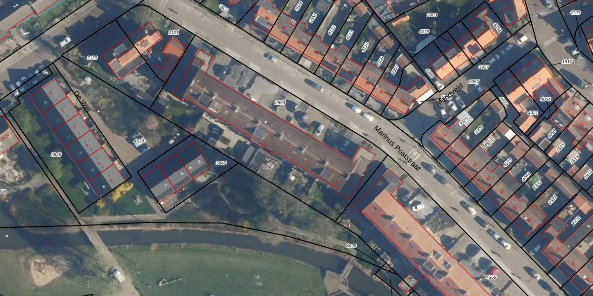 Marinus Poststraat 91 is gelegen op kadastraal perceel VKB02A2693. Deze kadastrale aanduiding is uniek en wordt gebruikt door het Kadaster om eigendomsrechten en andere zakelijke rechten vast te leggen. Het perceel maakt onderdeel uit van de kadastrale gemeente Valkenburg Zuid-Holland.