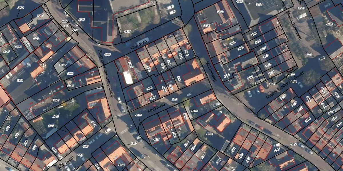 Gebruik de zoekbalk of klik op een perceel voor informatie over de adressen binnen dit perceel.