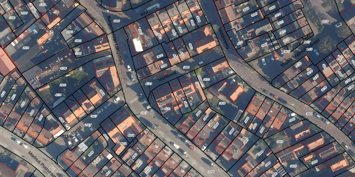 Gebruik de zoekbalk of klik op een perceel voor informatie over de adressen binnen dit perceel.