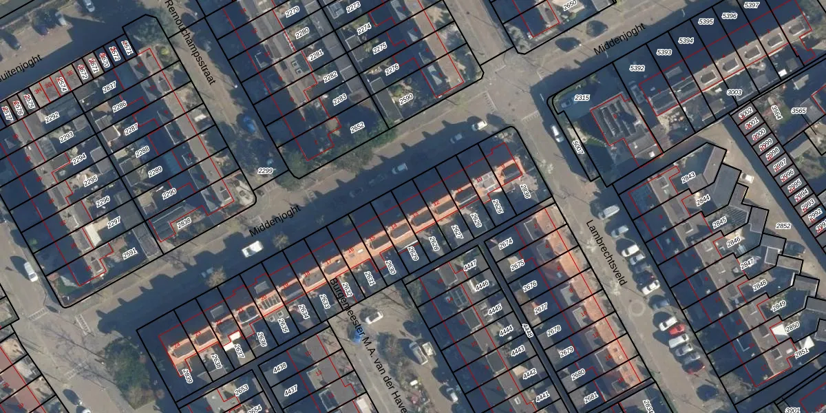 Gebruik de zoekbalk of klik op een perceel voor informatie over de adressen binnen dit perceel.