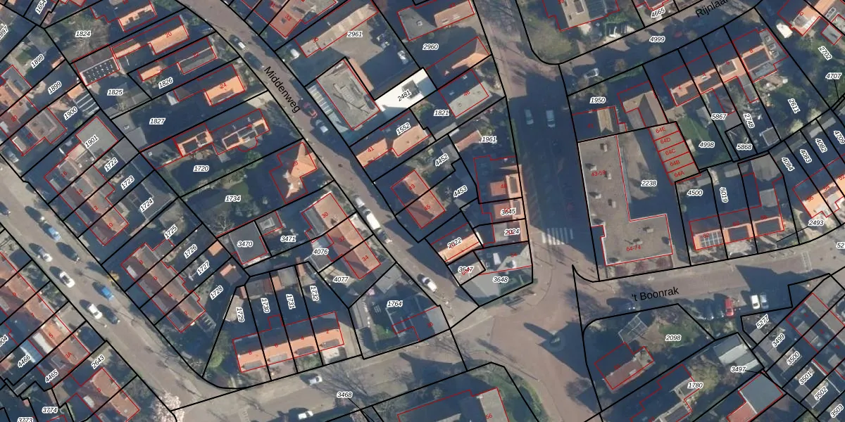 Middenweg 45 is gelegen op kadastraal perceel VKB02A4453. Deze kadastrale aanduiding is uniek en wordt gebruikt door het Kadaster om eigendomsrechten en andere zakelijke rechten vast te leggen. Het perceel maakt onderdeel uit van de kadastrale gemeente Valkenburg Zuid-Holland.