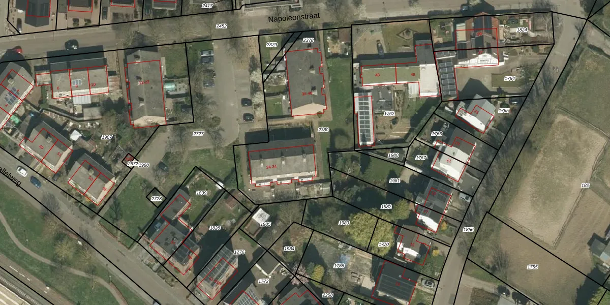 Napoleonstraat 32 is gelegen op kadastraal perceel VKB01D2380. Deze kadastrale aanduiding is uniek en wordt gebruikt door het Kadaster om eigendomsrechten en andere zakelijke rechten vast te leggen. Het perceel maakt onderdeel uit van de kadastrale gemeente Valkenburg Limburg.
