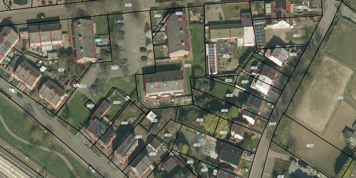 Napoleonstraat 34 is gelegen op kadastraal perceel VKB01D2380. Deze kadastrale aanduiding is uniek en wordt gebruikt door het Kadaster om eigendomsrechten en andere zakelijke rechten vast te leggen. Het perceel maakt onderdeel uit van de kadastrale gemeente Valkenburg Limburg.