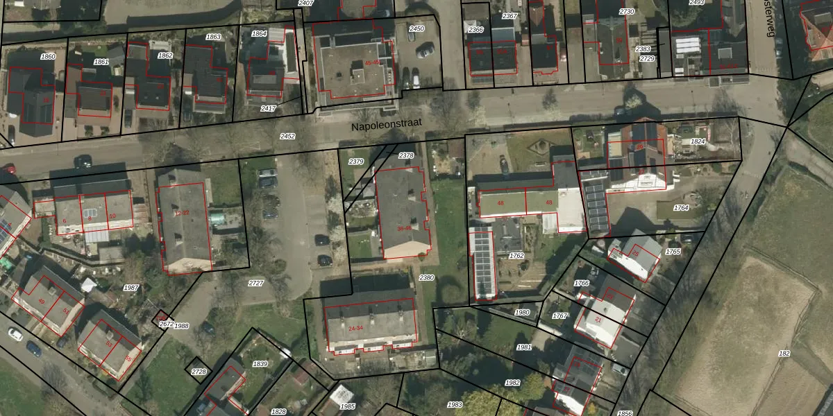 Het perceel waarop Napoleonstraat 42 staat heeft een oppervlakte van 1560 m². Dit is een zeer groot perceel. De perceeloppervlakte wordt geregistreerd door het Kadaster. Gedetailleerde informatie over de maten van dit perceel kunt u vinden in het rapport Kadastrale kaart met maatvoering van Napoleonstraat 42.