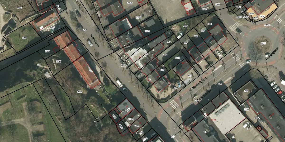 Gebruik de zoekbalk of klik op een perceel voor informatie over de adressen binnen dit perceel.