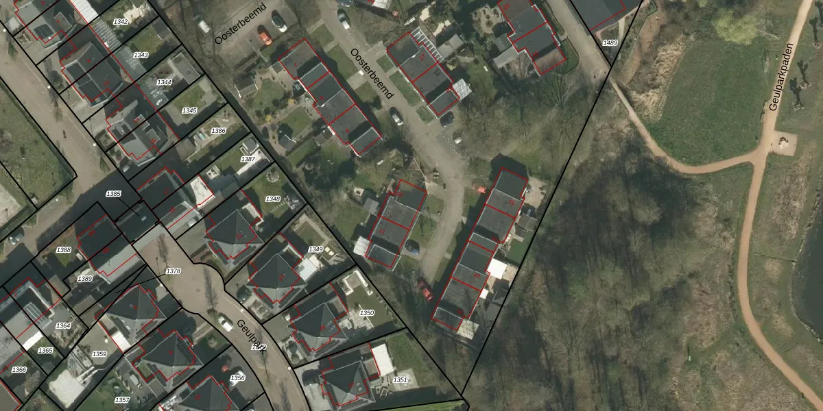 Het perceel waarop Oosterbeemd 10 staat heeft een oppervlakte van 1,3 ha. Dit is een zeer groot perceel. De perceeloppervlakte wordt geregistreerd door het Kadaster. Gedetailleerde informatie over de maten van dit perceel kunt u vinden in het rapport Kadastrale kaart met maatvoering van Oosterbeemd 10.
