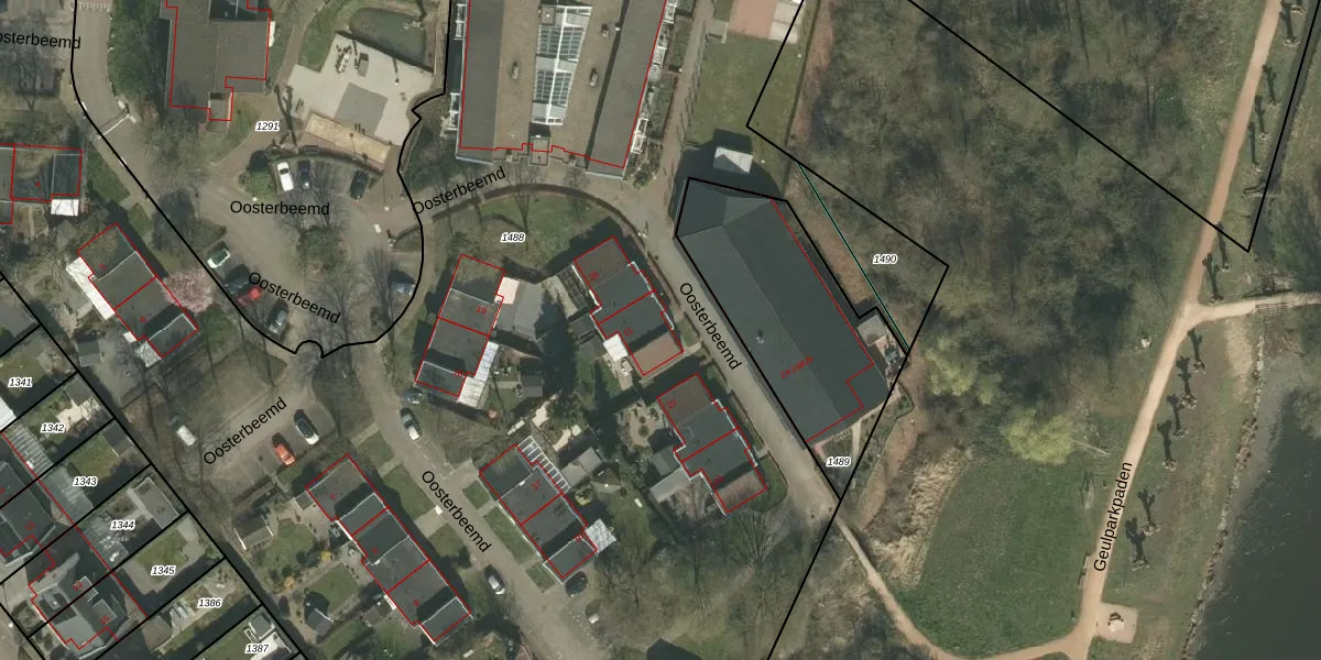 Het perceel waarop Oosterbeemd 21 staat heeft een oppervlakte van 1,3 ha. Dit is een zeer groot perceel. De perceeloppervlakte wordt geregistreerd door het Kadaster. Gedetailleerde informatie over de maten van dit perceel kunt u vinden in het rapport Kadastrale kaart met maatvoering van Oosterbeemd 21.