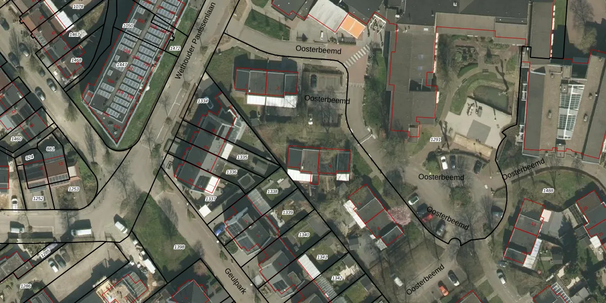 Het perceel waarop Oosterbeemd 3 staat heeft een oppervlakte van 1,3 ha. Dit is een zeer groot perceel. De perceeloppervlakte wordt geregistreerd door het Kadaster. Gedetailleerde informatie over de maten van dit perceel kunt u vinden in het rapport Kadastrale kaart met maatvoering van Oosterbeemd 3.