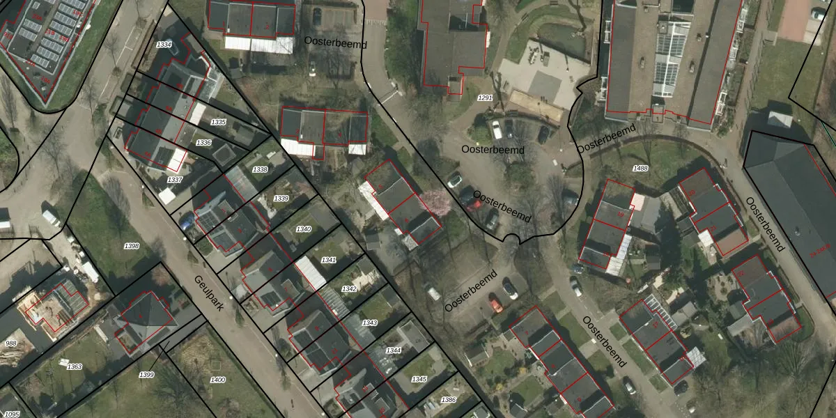 Het perceel waarop Oosterbeemd 6 staat heeft een oppervlakte van 1,3 ha. Dit is een zeer groot perceel. De perceeloppervlakte wordt geregistreerd door het Kadaster. Gedetailleerde informatie over de maten van dit perceel kunt u vinden in het rapport Kadastrale kaart met maatvoering van Oosterbeemd 6.