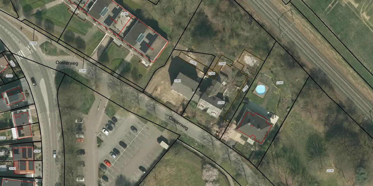Oosterweg 15-C is gelegen op kadastraal perceel SCH02B2281. Deze kadastrale aanduiding is uniek en wordt gebruikt door het Kadaster om eigendomsrechten en andere zakelijke rechten vast te leggen. Het perceel maakt onderdeel uit van de kadastrale gemeente Schin op Geul.