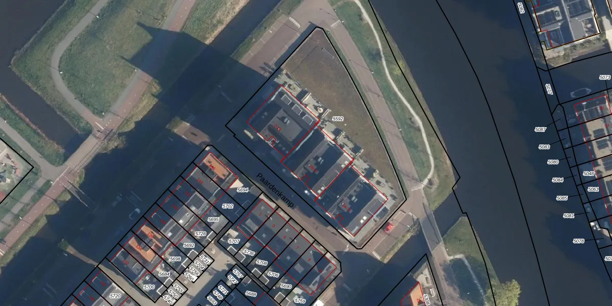 Paardenkamp 36 is gelegen op kadastraal perceel VKB02A5592. Deze kadastrale aanduiding is uniek en wordt gebruikt door het Kadaster om eigendomsrechten en andere zakelijke rechten vast te leggen. Het perceel maakt onderdeel uit van de kadastrale gemeente Valkenburg Zuid-Holland.