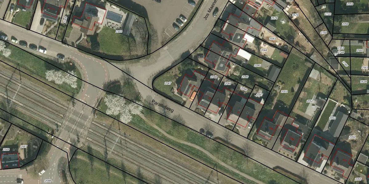Parallelweg 21 is gelegen op kadastraal perceel VKB01D2047. Deze kadastrale aanduiding is uniek en wordt gebruikt door het Kadaster om eigendomsrechten en andere zakelijke rechten vast te leggen. Het perceel maakt onderdeel uit van de kadastrale gemeente Valkenburg Limburg.