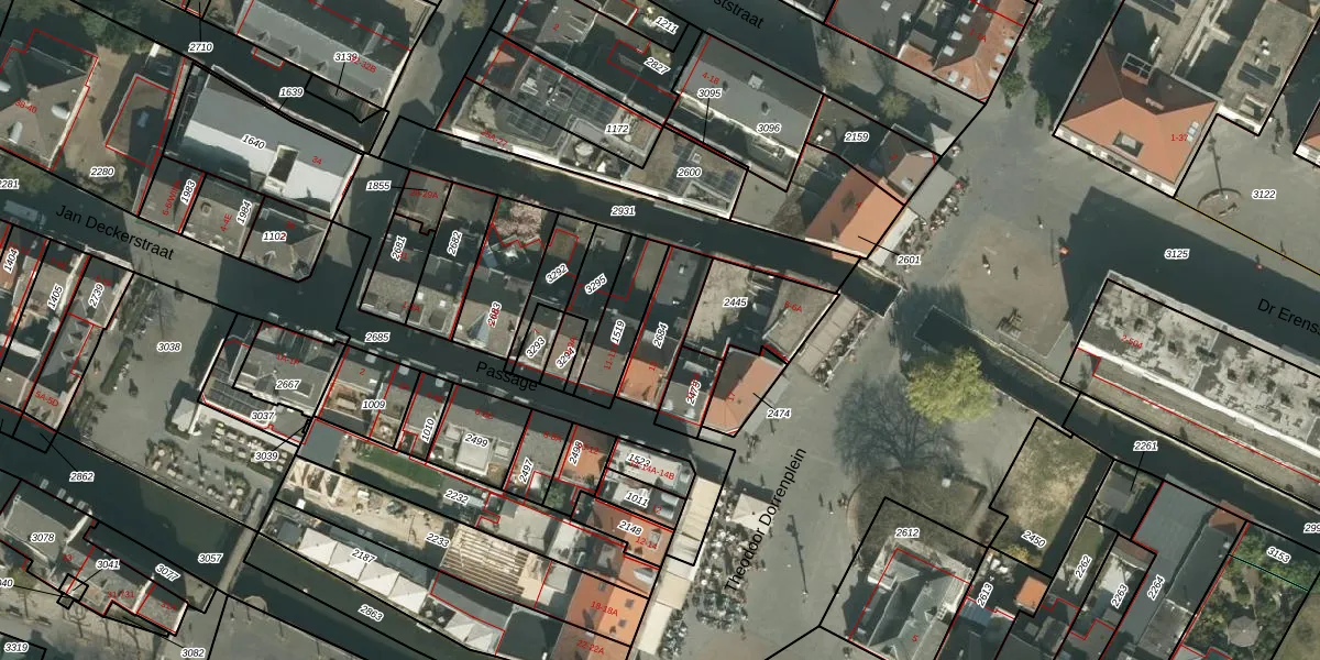 Het perceel waarop Passage 13 staat heeft een oppervlakte van 159 m². Dit is een middelgroot perceel. De perceeloppervlakte wordt geregistreerd door het Kadaster. Gedetailleerde informatie over de maten van dit perceel kunt u vinden in het rapport Kadastrale kaart met maatvoering van Passage 13.