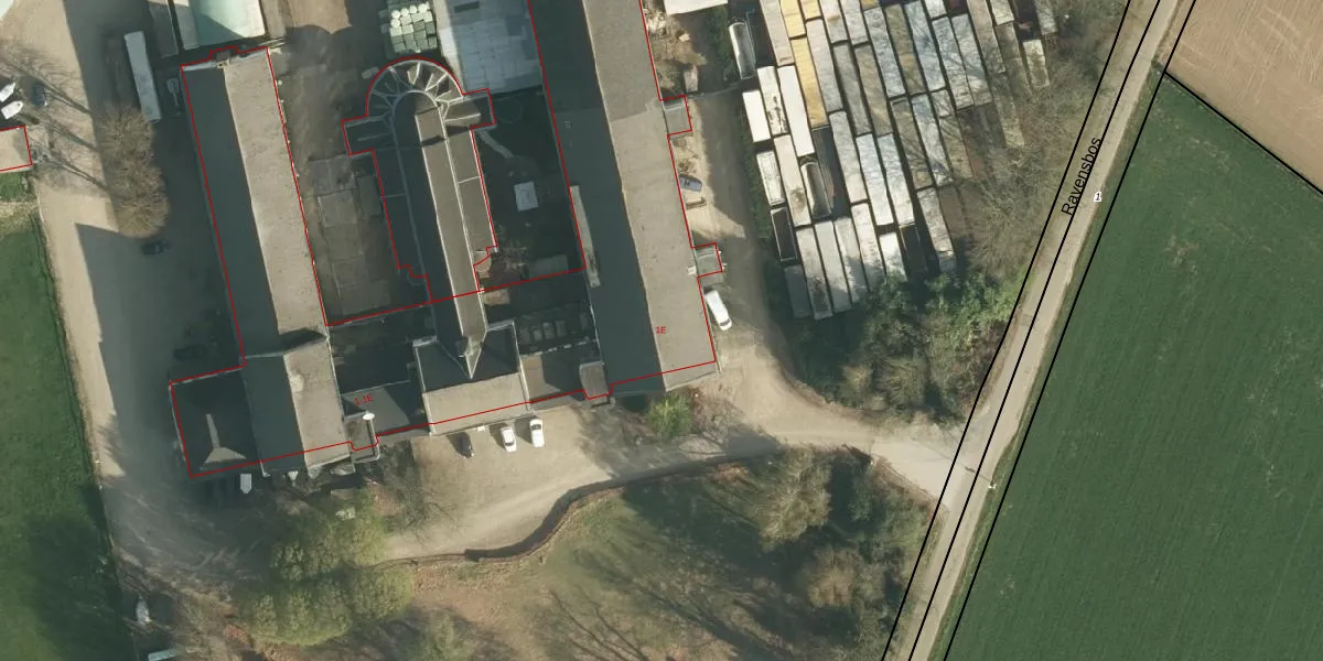 Het perceel waarop Ravensbos 1-E staat heeft een oppervlakte van 20,6 ha. Dit is een zeer groot perceel. De perceeloppervlakte wordt geregistreerd door het Kadaster. Gedetailleerde informatie over de maten van dit perceel kunt u vinden in het rapport Kadastrale kaart met maatvoering van Ravensbos 1-E.