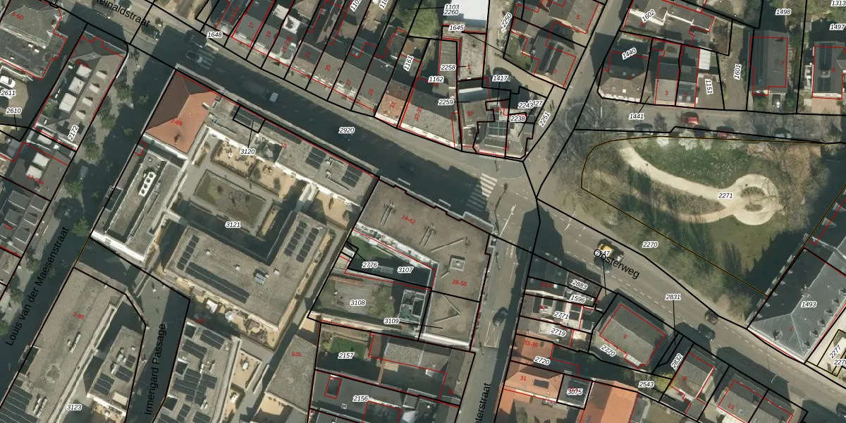 Reinaldstraat 28 is gelegen op kadastraal perceel VKB01A3107. Deze kadastrale aanduiding is uniek en wordt gebruikt door het Kadaster om eigendomsrechten en andere zakelijke rechten vast te leggen. Het perceel maakt onderdeel uit van de kadastrale gemeente Valkenburg Limburg.