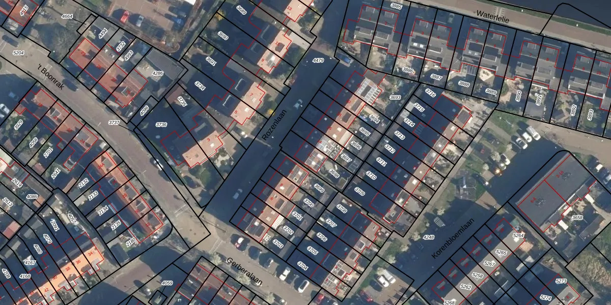 Het perceel waarop Rozenlaan 12 staat heeft een oppervlakte van 185 m². Dit is een middelgroot perceel. De perceeloppervlakte wordt geregistreerd door het Kadaster. Gedetailleerde informatie over de maten van dit perceel kunt u vinden in het rapport Kadastrale kaart met maatvoering van Rozenlaan 12.