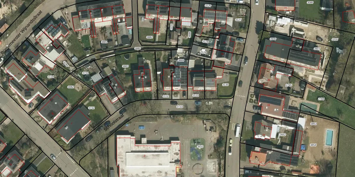 Schoolstraat 13 is gelegen op kadastraal perceel VKB03C3884. Deze kadastrale aanduiding is uniek en wordt gebruikt door het Kadaster om eigendomsrechten en andere zakelijke rechten vast te leggen. Het perceel maakt onderdeel uit van de kadastrale gemeente Oud-Valkenburg.
