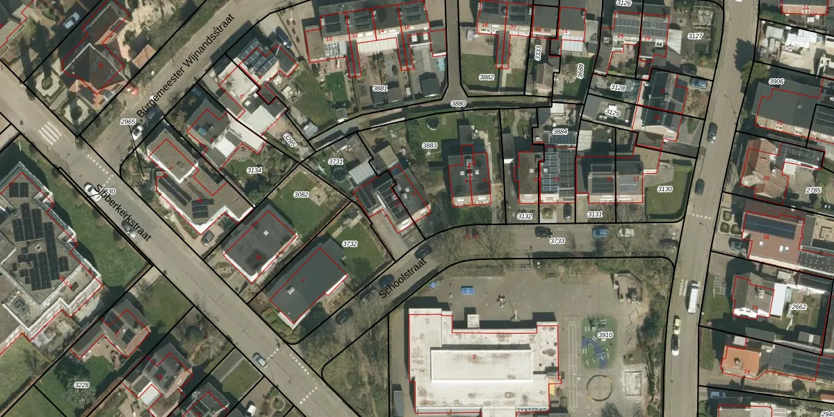 Schoolstraat 5 is gelegen op kadastraal perceel VKB03C3883. Deze kadastrale aanduiding is uniek en wordt gebruikt door het Kadaster om eigendomsrechten en andere zakelijke rechten vast te leggen. Het perceel maakt onderdeel uit van de kadastrale gemeente Oud-Valkenburg.