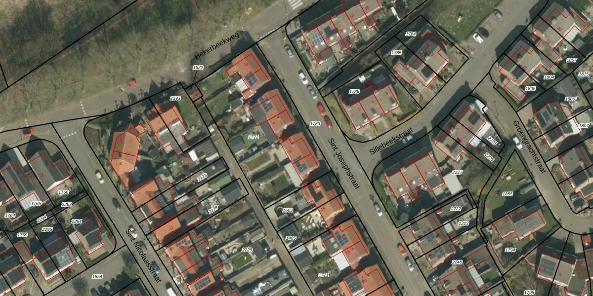 Het perceel waarop Sint Josephstraat 8 staat heeft een oppervlakte van 1280 m². Dit is een zeer groot perceel. De perceeloppervlakte wordt geregistreerd door het Kadaster. Gedetailleerde informatie over de maten van dit perceel kunt u vinden in het rapport Kadastrale kaart met maatvoering van Sint Josephstraat 8.