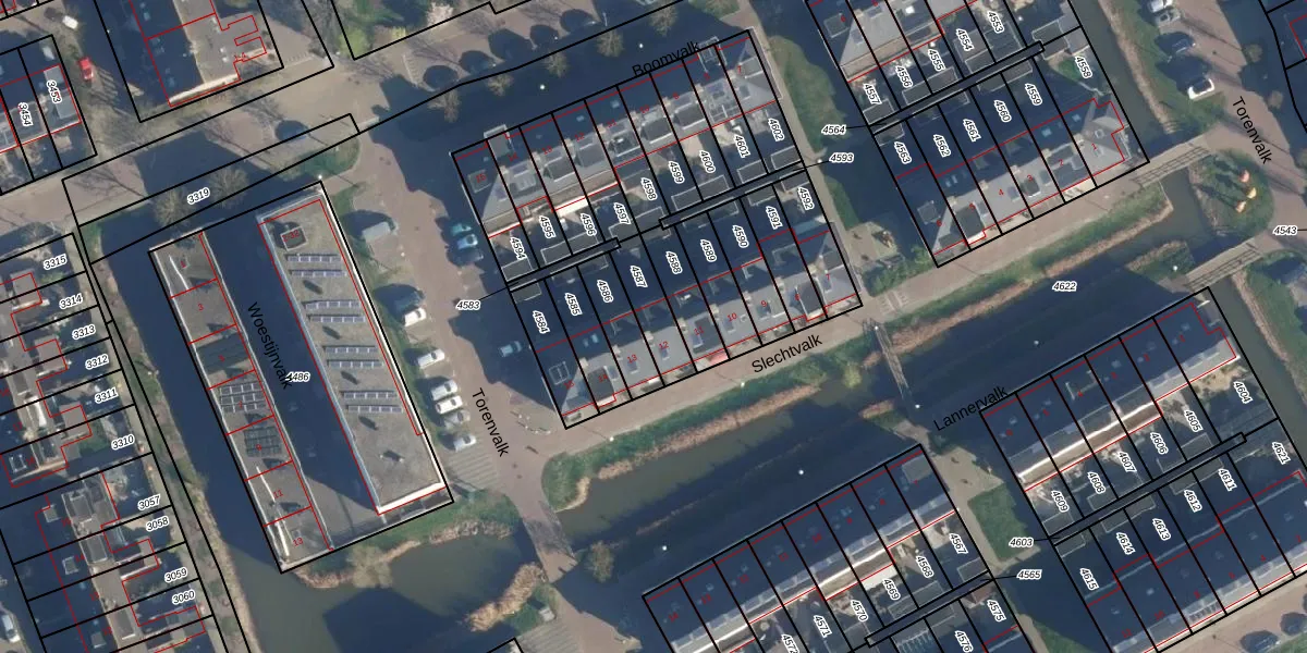Slechtvalk 12 is gelegen op kadastraal perceel VKB02A4587. Deze kadastrale aanduiding is uniek en wordt gebruikt door het Kadaster om eigendomsrechten en andere zakelijke rechten vast te leggen. Het perceel maakt onderdeel uit van de kadastrale gemeente Valkenburg Zuid-Holland.
