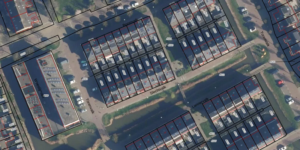 Gebruik de zoekbalk of klik op een perceel voor informatie over de adressen binnen dit perceel.