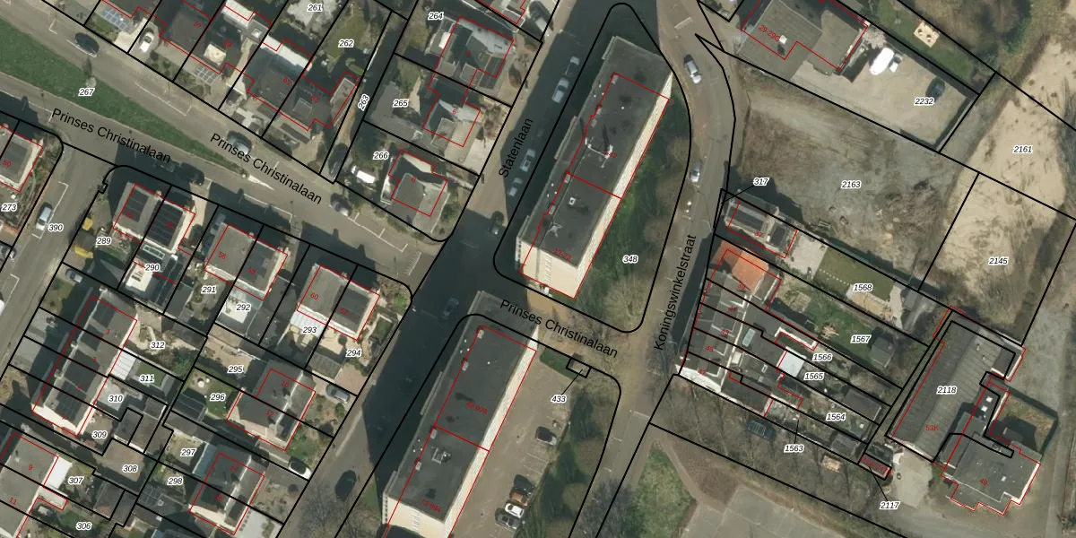Het perceel waarop Statenlaan 13 staat heeft een oppervlakte van 1320 m². Dit is een zeer groot perceel. De perceeloppervlakte wordt geregistreerd door het Kadaster. Gedetailleerde informatie over de maten van dit perceel kunt u vinden in het rapport Kadastrale kaart met maatvoering van Statenlaan 13.