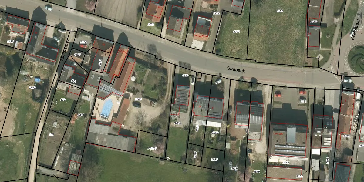 Het perceel waarop Strabeek 21 staat heeft een oppervlakte van 625 m². Dit is een groot perceel. De perceeloppervlakte wordt geregistreerd door het Kadaster. Gedetailleerde informatie over de maten van dit perceel kunt u vinden in het rapport Kadastrale kaart met maatvoering van Strabeek 21.