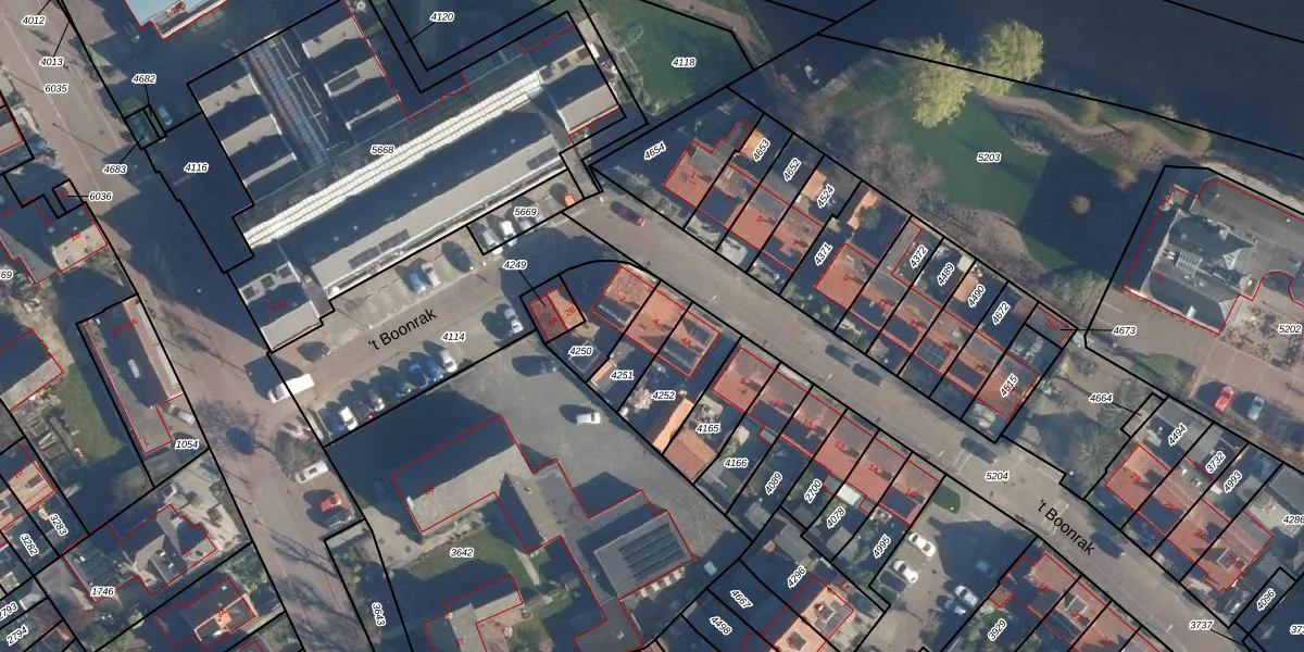 Het perceel waarop 't Boonrak 4 staat heeft een oppervlakte van 120 m². Dit is een middelgroot perceel. De perceeloppervlakte wordt geregistreerd door het Kadaster. Gedetailleerde informatie over de maten van dit perceel kunt u vinden in het rapport Kadastrale kaart met maatvoering van 't Boonrak 4.