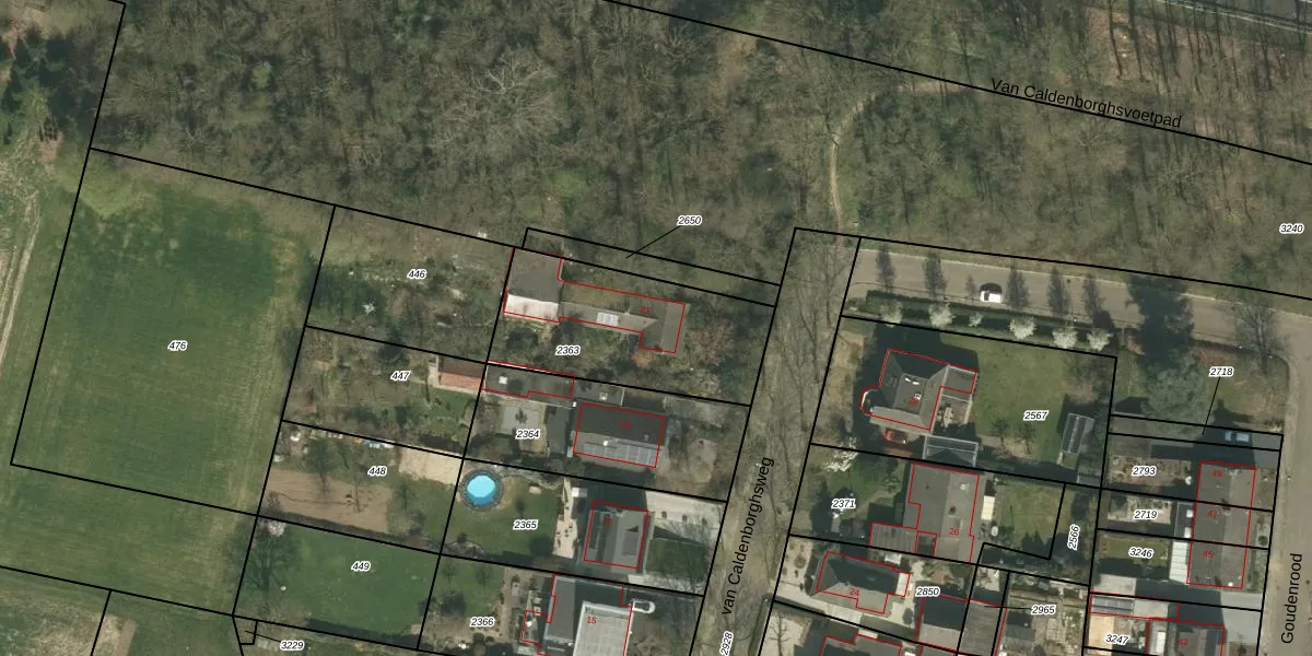 van Caldenborghsweg 21 is gelegen op kadastraal perceel HHM00A2363. Deze kadastrale aanduiding is uniek en wordt gebruikt door het Kadaster om eigendomsrechten en andere zakelijke rechten vast te leggen. Het perceel maakt onderdeel uit van de kadastrale gemeente Houthem.