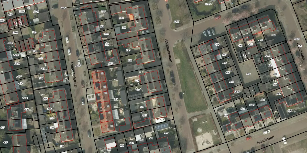 Het perceel waarop Anemoonlaan 12 staat heeft een oppervlakte van 245 m². Dit is een middelgroot perceel. De perceeloppervlakte wordt geregistreerd door het Kadaster. Gedetailleerde informatie over de maten van dit perceel kunt u vinden in het rapport Kadastrale kaart met maatvoering van Anemoonlaan 12.