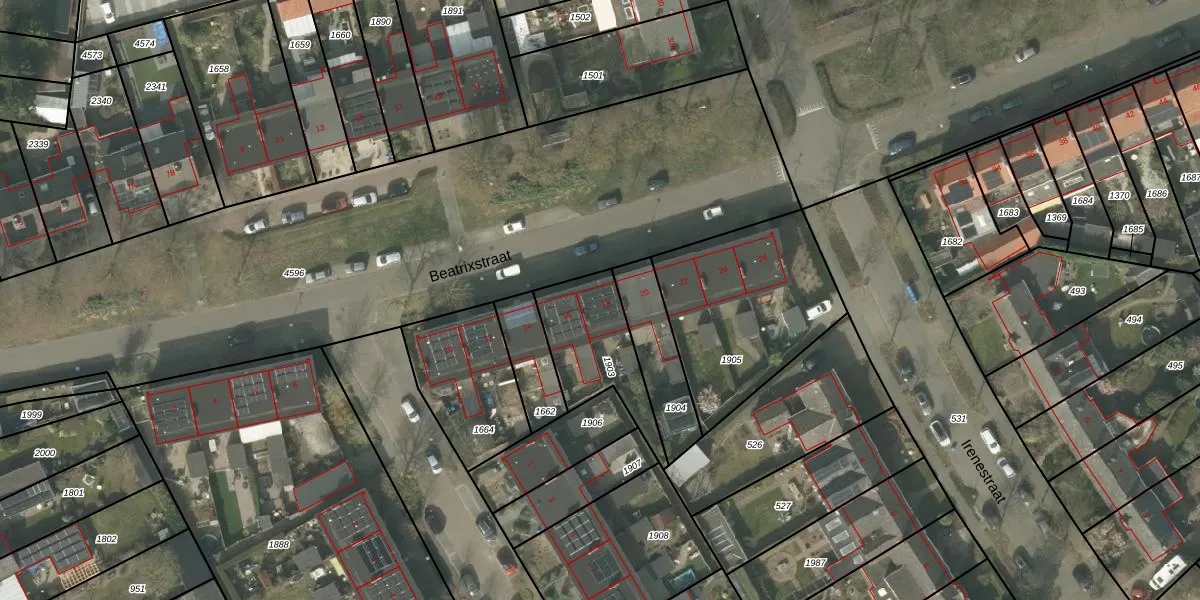 Het perceel waarop Beatrixstraat 18 staat heeft een oppervlakte van 312 m². Dit is een groot perceel. De perceeloppervlakte wordt geregistreerd door het Kadaster. Gedetailleerde informatie over de maten van dit perceel kunt u vinden in het rapport Kadastrale kaart met maatvoering van Beatrixstraat 18.