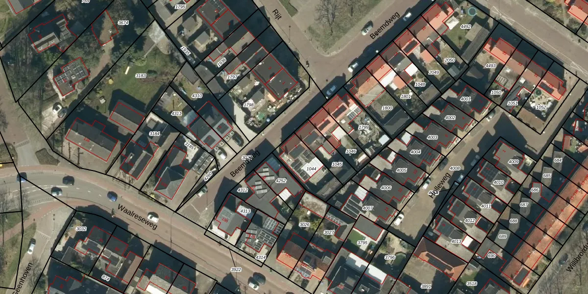 Beemdweg 2 is gelegen op kadastraal perceel VKW00E1044. Deze kadastrale aanduiding is uniek en wordt gebruikt door het Kadaster om eigendomsrechten en andere zakelijke rechten vast te leggen. Het perceel maakt onderdeel uit van de kadastrale gemeente Valkenswaard.
