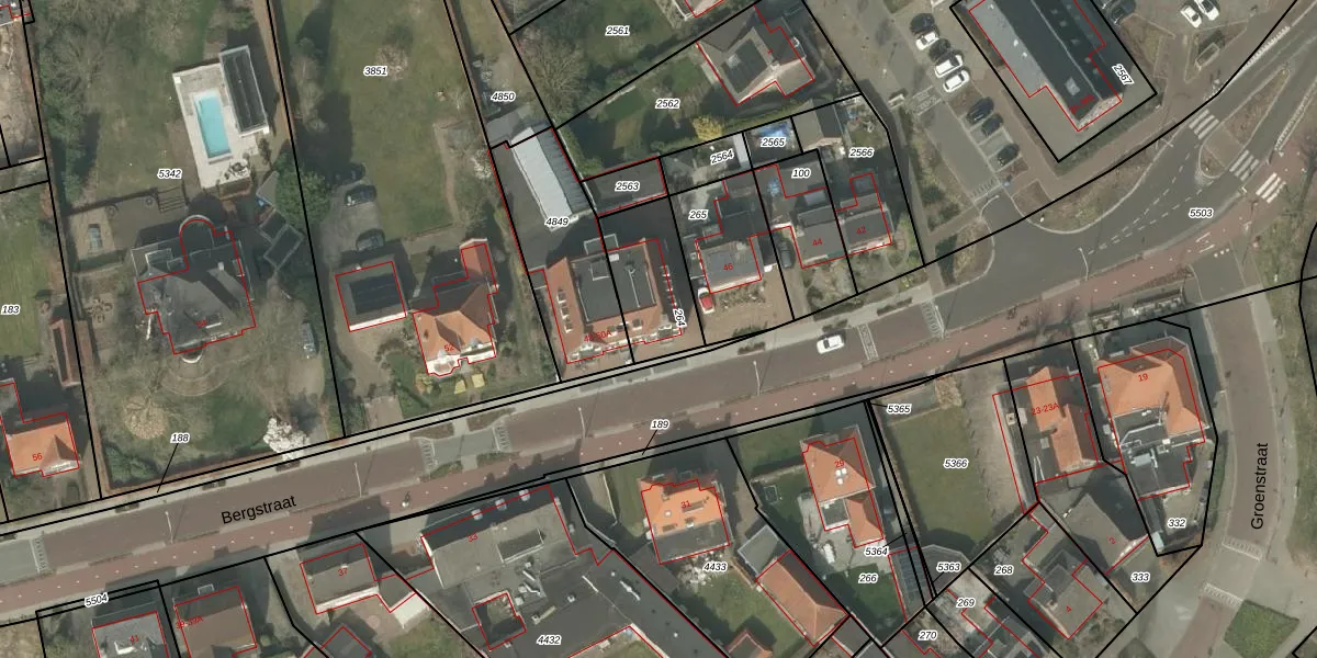 Het perceel waarop Bergstraat 48 staat heeft een oppervlakte van 263 m². Dit is een middelgroot perceel. De perceeloppervlakte wordt geregistreerd door het Kadaster. Gedetailleerde informatie over de maten van dit perceel kunt u vinden in het rapport Kadastrale kaart met maatvoering van Bergstraat 48.
